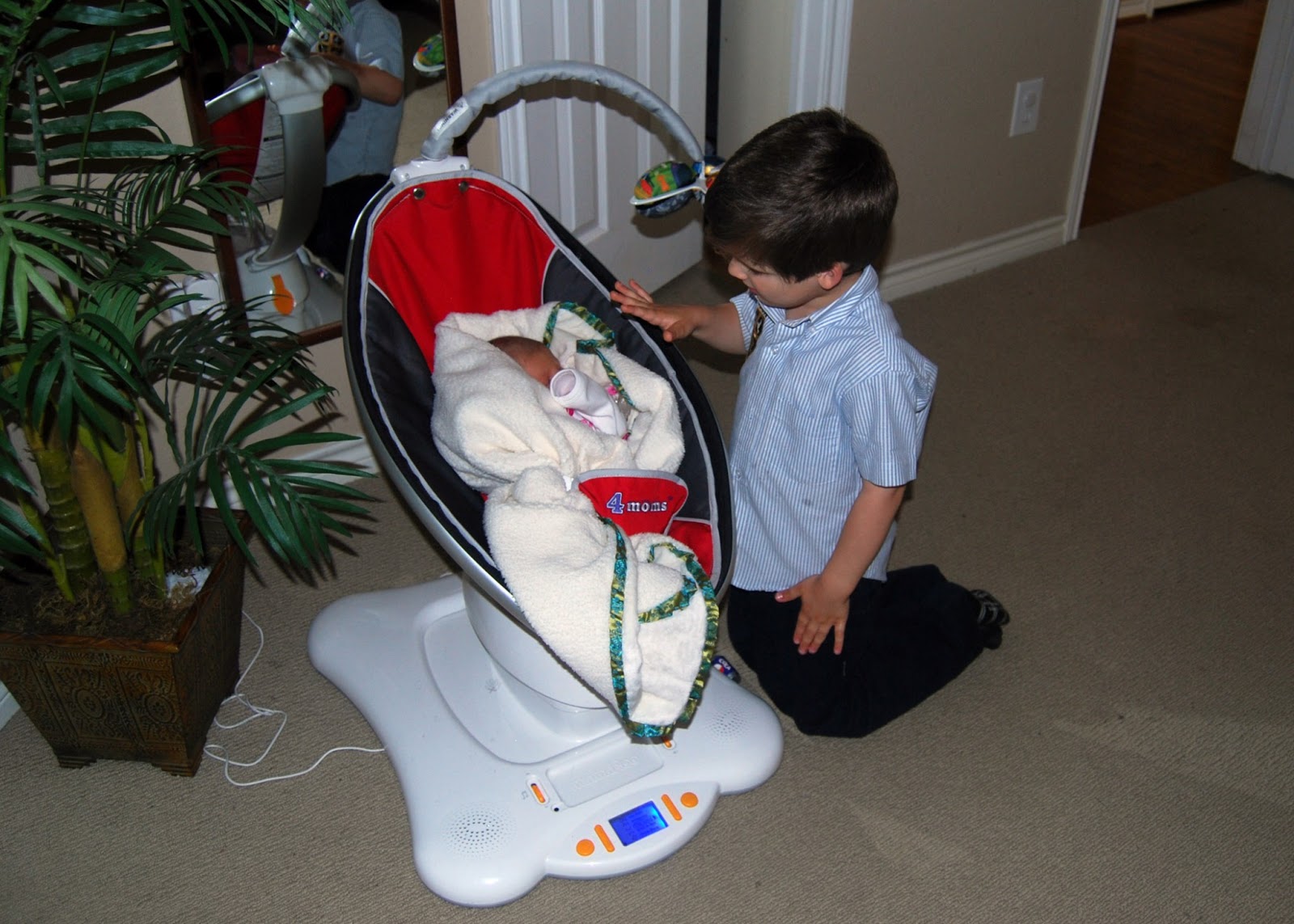 The boys took turns holding their sister (and covering her swaddle blanket in chocolate crumbs - hehehe)