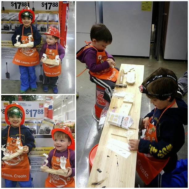 While Griffin and I shopped, the boys built boats at the Home Depot Kids workshop (and yes, Luke is wearing his head lamp from Haha).