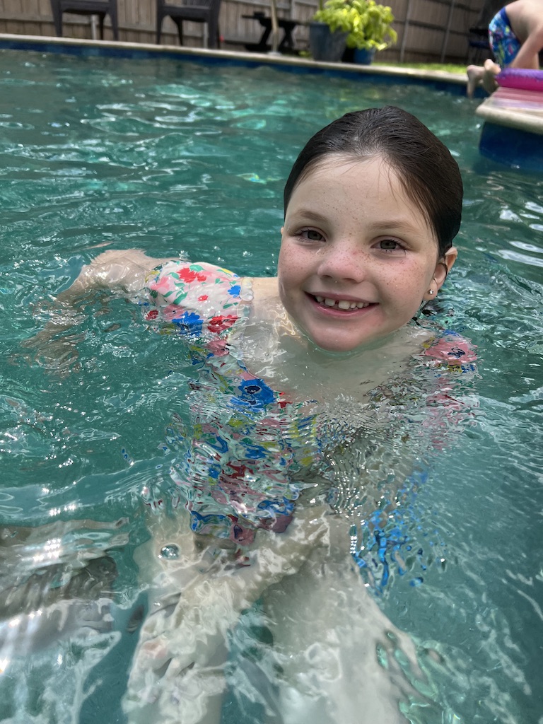 Mason has been dubbed "the fish" at our house this summer. He is ALWAYS in the pool. A quick dip before breakfast? SURE! Post-run swim? Absolutely! Afternoon lounging in the spa? Sign him up!