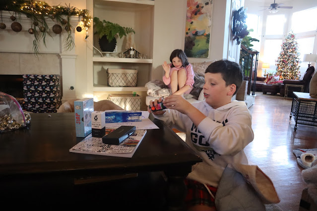 Our Christmas was VERY low key this year which is just how we like it ;). We told the kids they could come downstairs at 8:30 and the elves left a "jingle bell booby trap" just in case anyone decided to venture down early.
