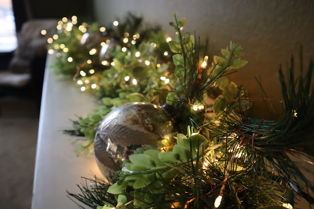 Along with a doubled up garland with bronzed mercury glass ornaments.